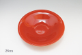 直径25.8cm×高さ5.3cm、朱色に近い赤色(深紅)の浅鉢。底面が狭くすぼまっていますので(写真4)、あんかけ焼きそばや冷やし中華、サラダやパスタ、カレーなど幅広くお使い頂けます。