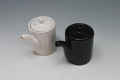 直径7.8cm×11.5cm×高さ11.3cm、容量約200cc、すっきりとした小ぶりのだし入れ。ソース、ポン酢、天つゆなどに。うっすらとピンクがかった粉引(白)と光沢のある天目(黒)の2色ございます。*焼成で黒の方がわずかにサイズが大きいです