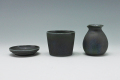 まるで金属のような釉薬を施したモダンでクールなそば徳利、そば猪口、薬味小皿。そば徳利サイズ直径6.7cm×高さ8cm、容量約120cc、そば猪口口径7.7cm×高さ6.2cm、容量約150cc(すりきり)、小皿直径8cm×高さ1.8cm。釉薬の特性で表情にムラや明暗など個体差がございます。それぞれ単品の他セットもございます。