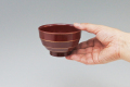 直径11.2cm×高さ6.8cm 容量約250cc(渕下1cm)、PET樹脂製の標準サイズのお椀。外側は木目、内側は艶消しの落ち着いた朱色。金のラインがアクセントに。食器洗浄機対応