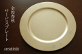 直径31cm、中央の盛込み部分は直径約21cmのABS樹脂製の大皿。表面にツヤを抑えたゴールドを塗り、部分的にモミジとさくら、流水模様を施してあります。そのまま握り鮨や8寸のような盛り方やガラスのプレートを重ねたりお盆やトレーとしても使用できます。