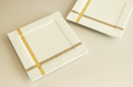 一辺17cmの正角皿。白磁に白く細かい吹き付けがあり金と銀のラインが施されています。
