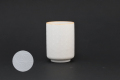口径6.2cm×高さ8.7cm 約160cc(渕下1cm)、外側は素地に光沢のある麻の葉模様の小紋が転写されています。内側は洗いやすいように無色の釉薬が施釉されています。和洋問わないモダンなゆのみです。
