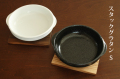 【美濃焼】直径14cmの手付き丸型グラタン皿。黒と白の2色。直径16cmのサイズLもございます。敷き板は別売り。オーブン・電子レンジはOK、直火は不可。