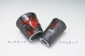 鉄釉のようなつや消しの下地にワンポイントで赤釉のはけ目があるかっこいいカップ。お茶や冷酒によさそうなスリムカップと焼酎のロック、うどんのつけ汁によさそうなロックカップの2種類ございます。スリム口径7cm×高さ10.5cm、容量約180cc(すりきり)、ロック口径9.5cm×高さ8.7cm、容量約300cc(すりきり)