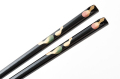耐熱温度200℃、強化PET樹脂製の高級エコ箸。長さ22.5cmのテーブルの上で転がりにくい丸みを帯びた四角型。先端は滑り止めになっています。つやのある黒地に落ち着いた金彩のひょうたんが六つ。「六瓢」は「無病息災」とかけて縁起の良いモチーフです。大人の雰囲気です。