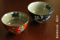 【有田焼】グレーの土物の生地の外側に桜と流水をイメージした模様が一面に描かれた人気のごはん茶碗。赤と青があり赤は青より小さめです。
