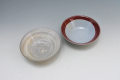 口径13.3cm×高さ3.7cm、渕の一か所が凹んだデザインの浅小鉢。普段使いの取鉢にちょうどいいサイズ。黄粉引(グレー)と辰砂流し(朱紫)の2色ございます。それぞれ釉薬の特性で黄粉引は白いはけ目の濃淡や赤みを帯びたり、また辰砂流しはつやがあったりなかったり、グレーが青みを帯びたり、朱紫が赤かったり青っぽかったり、個体差の激しい商品です。ご了承の上お買い求め下さい。