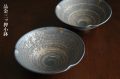 直径15cmの平小鉢。表面裏面ともに落ち着いた金彩の刷毛目が描かれています。渕に3ヶ所押してあるのがいいアクセントになっています。