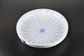 幅24.2cm×奥行23.8cm×高さ5cm、洸琳窯による染付の盛り鉢。煮物、お造り、サラダなどに。渕にしがみつく一閑人がなんとも言えません。