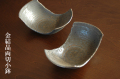 幅16cm×奥行9.4cm×高さ5.9cmブロンズのような釉薬の両端をちぎったようなユニークな形状の小鉢。幅が約9cmと狭いので珍味や和え物などに。釉薬の特性で発色の濃淡、ムラ、個体差がございます。