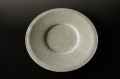 直径28.5cm×高さ2.6cm、盛り付け部分の直径13cm、幅が約8cm大きなリムが付いたメインプレート。梅花皮(かいらぎ)特有の表面にヒビ割れたような表情がたまりません。多少光沢がございます。手造りのため濃淡など個体差がございます。