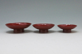 ABS樹脂製の朱塗りの高台盃。ウレタン朱塗り。2.6寸(直径7.8cm×高さ2.5cm)、3寸(直径9cm×高さ3cm)、3.5寸(直径10.5cm×高さ3.2cm)の3サイズ、別注で金色の文字入も50個から承ります。詳細はお問合せ下さい