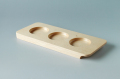 幅9cm×長さ22cm×高さ1.6cm、穴の直径4.8cmの木製トレー。そのまま薬味やスパイスをのせたり写真のように飲み比べセットにしたりいろんな使い方ができます。