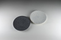 【美濃焼】直径15.4cm×高さ1.8cm、比較的フラットな形状の丸皿。表面にヒビ割れのようなパターンを施しました。釉薬の特性で色の濃淡やムラなどがございます。