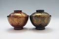 1客の直径11.2cm×高さ7cm(9.5cmふた含め)、容量220cc、標準サイズの木乾製の吸い物椀。ウレタン塗料。内側はともに艶黒、細かい金彩は転写で施し価格を抑えました。赤黒同じ大きさです。単品販売の他、結婚のお祝いやギフトにペアセットもお選び頂けます。食器洗浄機もOKです。
