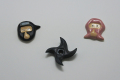 陶器製手造りの箸置き。忍者シリーズです。黒い忍者3.8cm×3.8cm×高さ1cm、ピンクのくの一3.2cm×3.8cm×高さ1cm、手裏剣5cm×5cm×高さ1cm