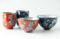 店頭で人気の「春秋流水」夫婦茶碗と組湯呑をセットにしました。赤、青ともに深みのある色合いで桜の花びらと紅葉が描かれています。結婚のお祝やご両親へのプレゼントに。茶碗サイズ赤直径11cm×高さ6.8cm、青直径12cm×高さ7.2cm、湯呑赤直径7.4cm×高さ9cm、青直径7.7cm×高さ9.7cm、箱21.5cm×26.2cm×高さ9cm