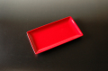 長さ20.4cm×幅11.3cm×高さ1.5cm、渕が上がった長角プレートにロッソ(赤)が新登場。テーブルが華やかになり食欲を刺激します。