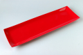 幅11.5cm×長さ36cm×高さ2.1cm、四角がなだらかに上がった長さのあるさんま皿。ビビッドな赤釉が目をひきます。平らな面が多いので珍味入れや小皿をのせて前菜皿としても 。