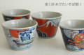 口径10cm×高さ7.3cm、手造りのやや大きめなそば猪口。おそば、うどんのお猪口はもちろん、小鉢や冷酒、焼酎など酒器にもってこいです。土物で縁起物が彩色してあります。