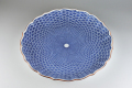 直径24cm×高さ3.4cm、思わず吸い込まれそうな青海波模様の花型8寸多用皿。適度な深さがあるのでディナープレートとして、パーティーや宴会の盛込み皿にもお使い頂けます。模様は転写なので価格を抑えられました。