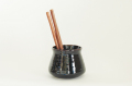 胴周り直径12.2cm(口径は9.5cm)×高さ9.5cm、小ぶりのあら入れ。お鍋料理の際に出た骨や殻を捨てるのに用います。光沢のある天目釉。釉薬の特性で渕が茶色く発色しているものもございます。(お玉はイメージです)形状は違いますが一回り大きいタイプもございます。