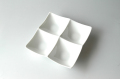 1辺16.5cm×16.5cm×高さ3.8cm、少し深さがある4品プレート。スパイスやたれ、ナムルの盛合せなどにおすすめです。