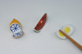 有田焼の磁器製はしおき。レモン長さ5×幅2.5×高さ2cm、スイカ長さ4.9×幅1.4×高さ2.5cm、ゆでたまご長さ4.3×2.4×高さ高さ2.3cm。*お箸はイメージです。サイズは目安にして下さい。